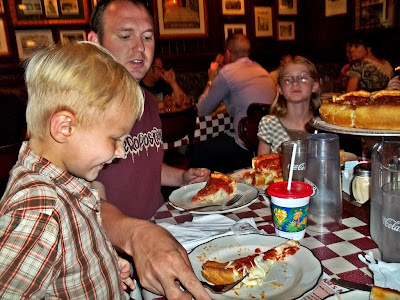 Next we headed to the hotel for the evening. Swimming and a little TV watching ended our evening. Some of us woke up early the next morning (which was Benaiah's 3rd birthday), got breakfast and then went back to the room to wake everybody else up. After breakfast, some grandpa monster play, and some Scripture reading, we parted our ways with my parents and continued our journey on into Wisconsin.